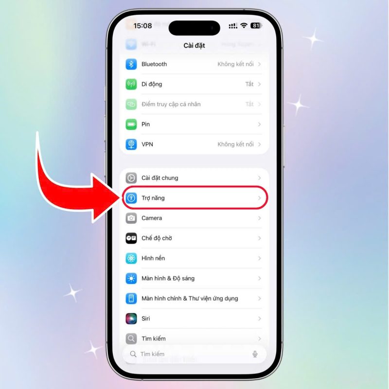 Bước 1: Truy cập vào phần Trợ năng trong Cài đặt