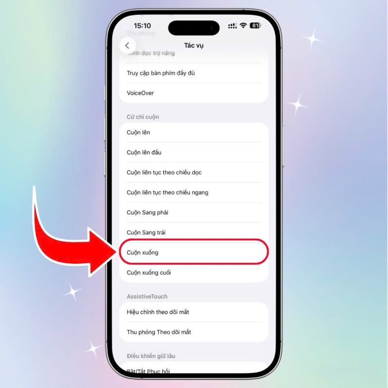 Bước 4: Sử dụng cử chỉ cuộn xuống để thiết lập