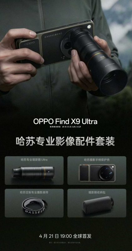 Hình ảnh quảng bá hé lộ OPPO Find X9 Ultra có thể gắn thêm ống kính tele mở rộng, tạo nên tổ hợp có ngoại hình gần với máy ảnh chuyên nghiệp. Đây là hướng tiếp cận mới, thể hiện nỗ lực thu hẹp ranh giới giữa điện thoại và thiết bị nhiếp ảnh chuyên dụng.
